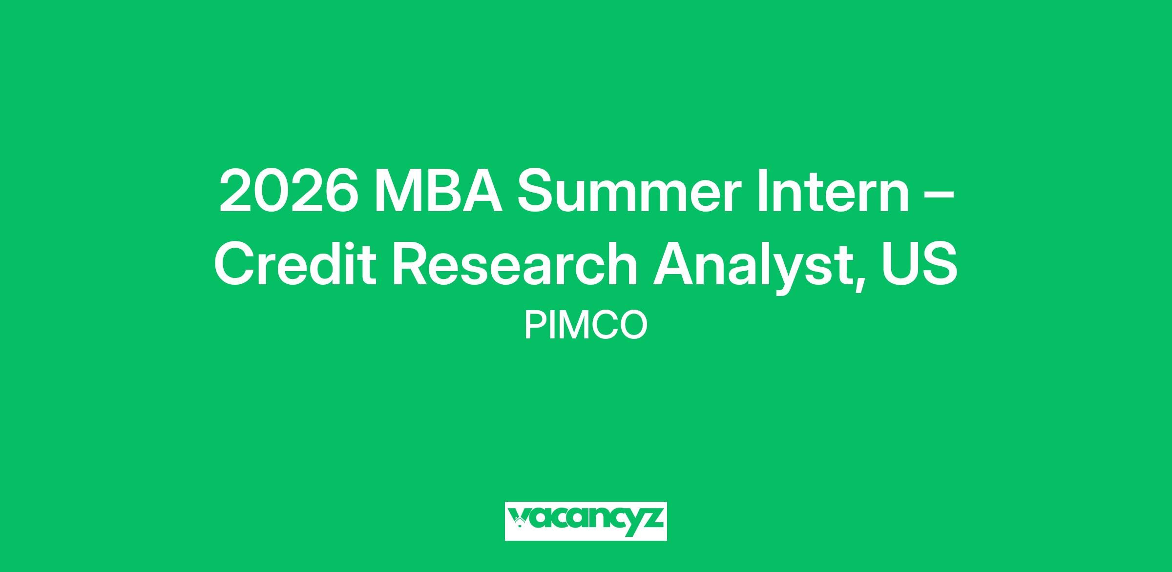 2026 MBA Summer Intern – Credit Research Analyst, US