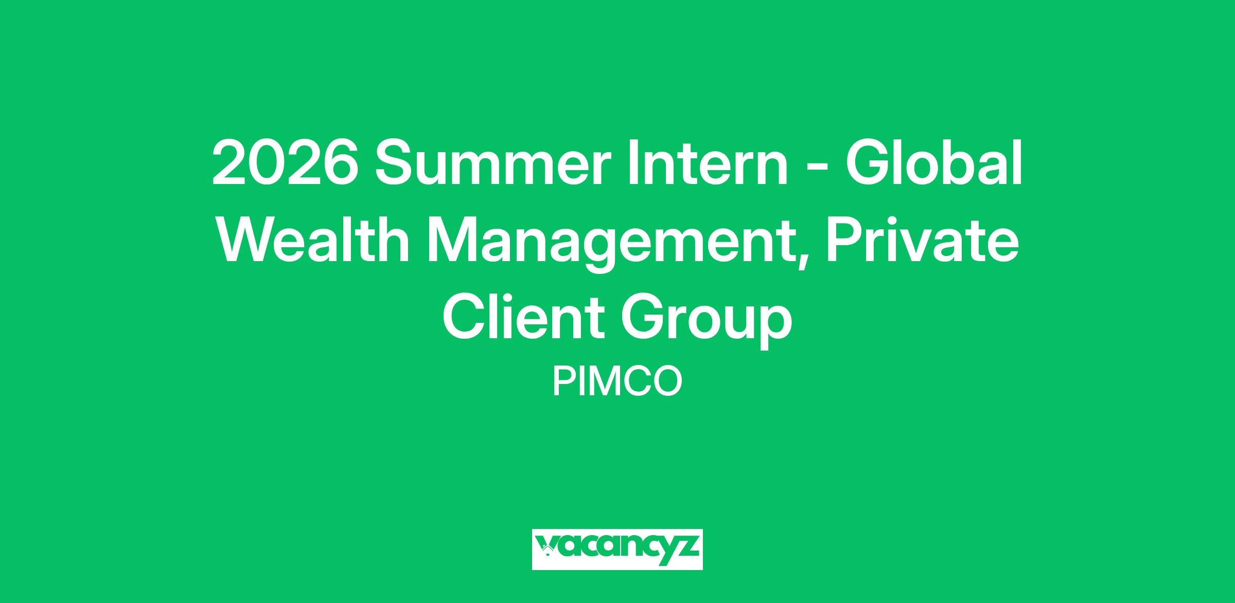 2026 Summer Internship – Account Analyst, Global Wealth Management Private Client Group, US