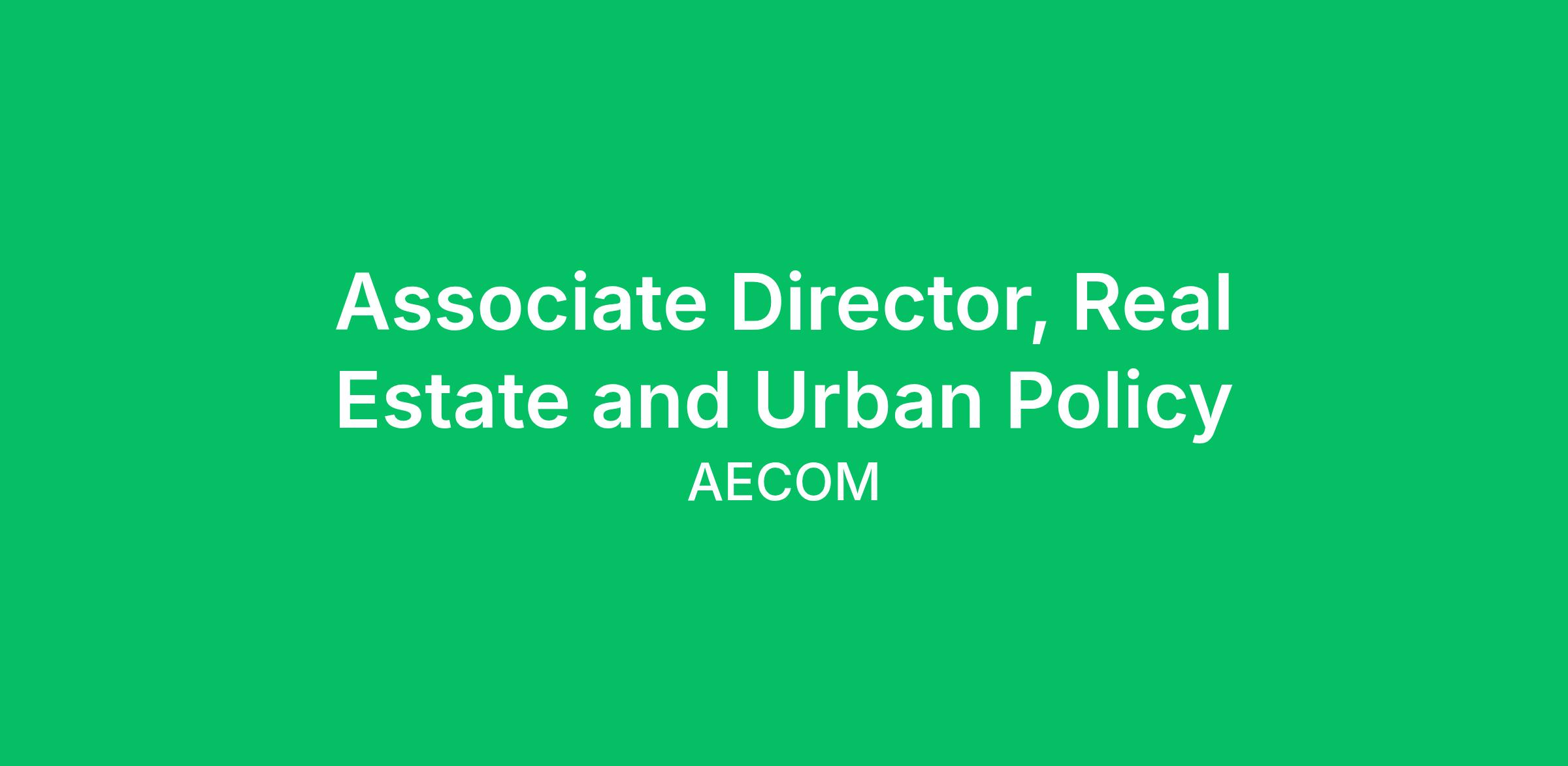 AECOM Advisory is seeking an Associate Director to help support and expand our urban policy, real estate and economic service offering. The selected candidate will join our growing Advisory business line, a team of 400 staff globally comprised of business and policy analysts, economists, commercial strategists, technology architects, sustainability and resilience planners, and human capital and change management practitioners. We integrate strategic consulting with policy and technical expertise to help cities, regional, and other public agencies tackle challenges and better serve their constituents. We are recruiting for this role in the following locations: Los Angeles, CA; San Francisco, CA; Oakland, CA.