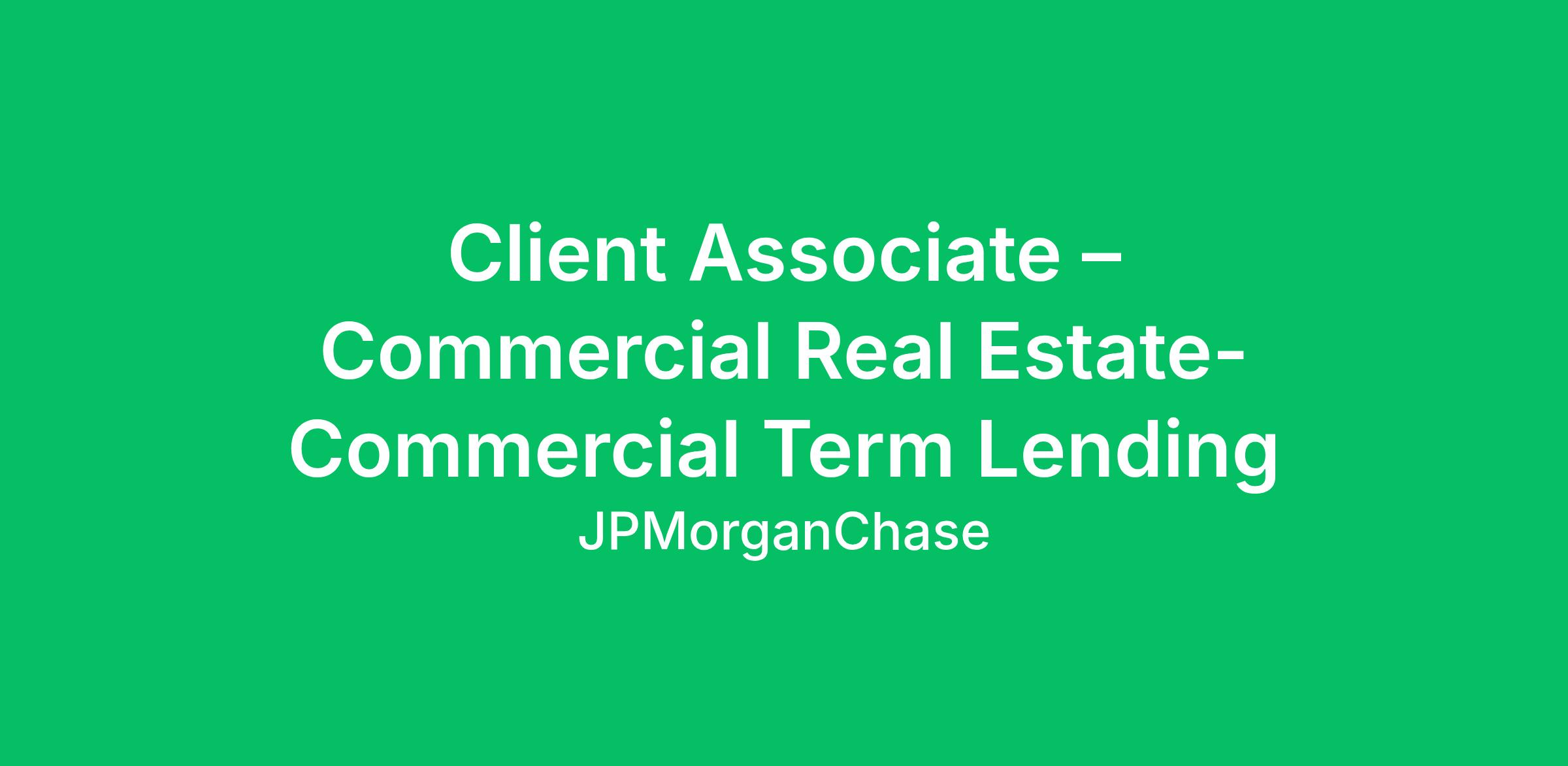 As a Client Associate within the Commercial Term Lending team, you will have a relentless internal drive to succeed, a laser focus on providing a best-in-class client experience and the understanding that honing your inherent Sales/Business Development skills is the key to success and advancement.