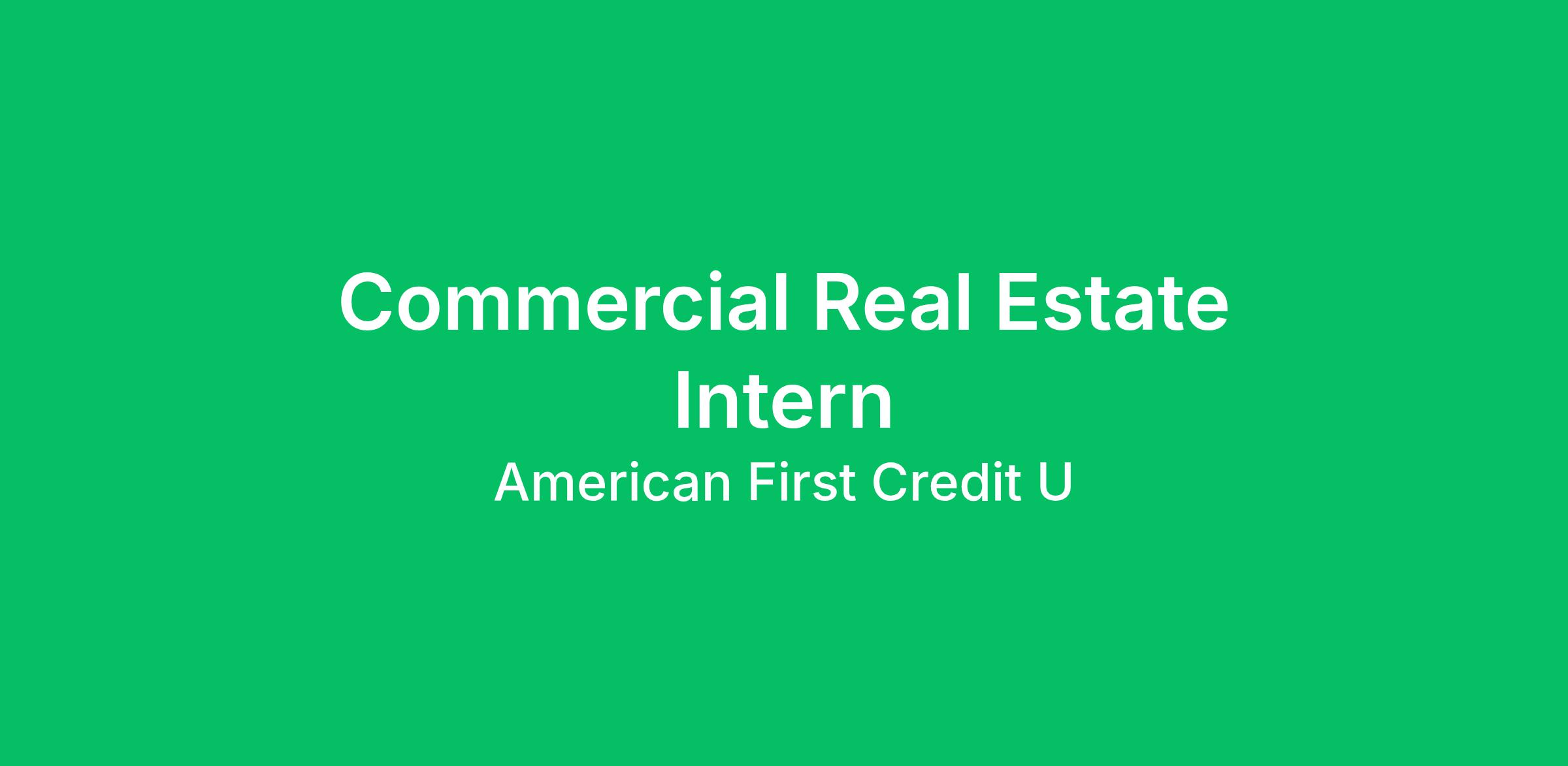 The Commercial Real Estate Intern will begin to explore the world of the Commercial Real Estate Lending and Credit Union industry by assisting with the processing of commercial real estate loan files from receipt of Letter of Interest through closing, servicing and portfolio management in compliance with the policies and procedures of American First Credit Union and regulatory compliance. This individual will be required to follow general instructions and perform finance and administrative related tasks requiring at least basic level knowledge of commercial real estate principles and practices.