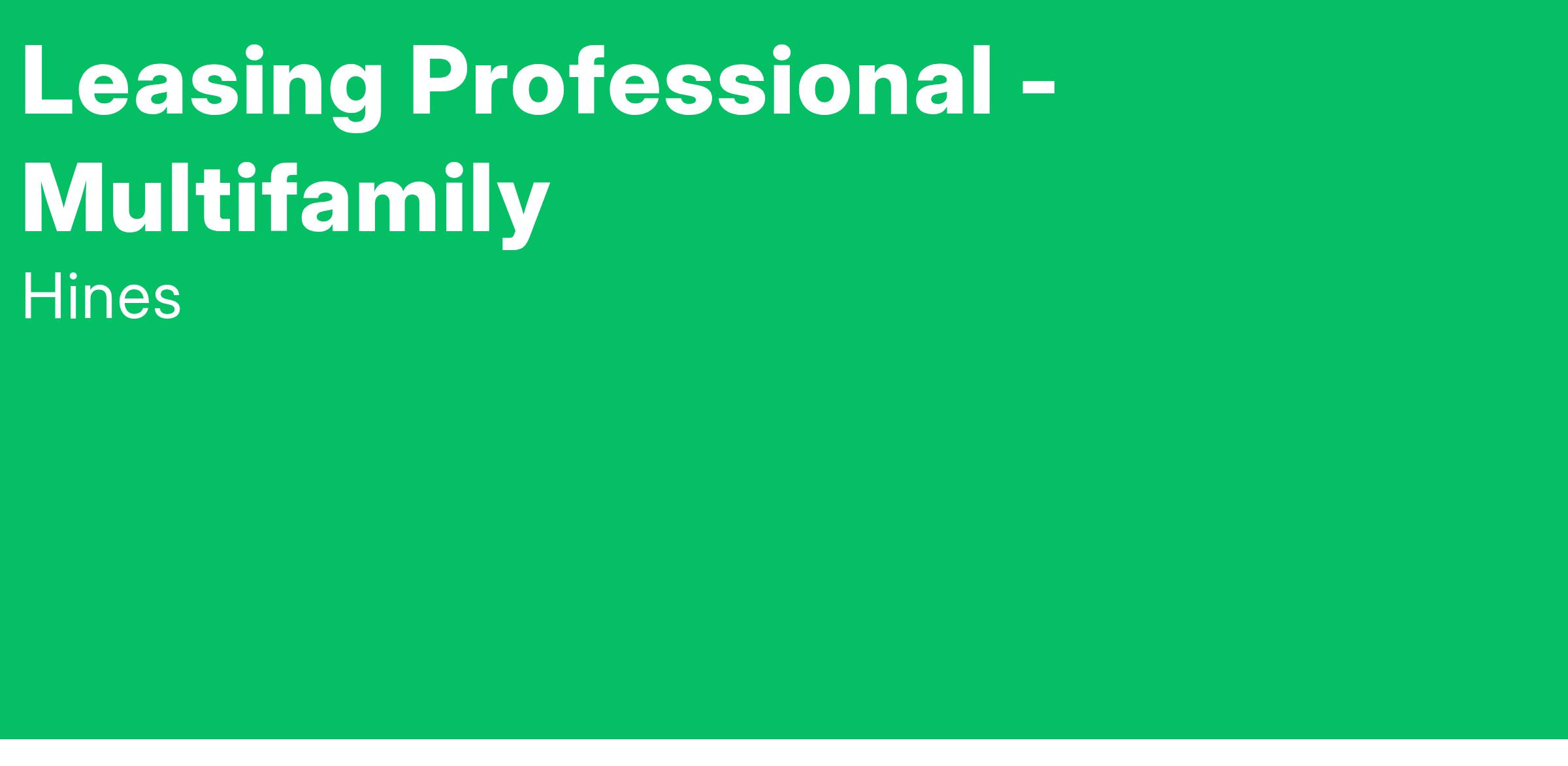 As a Leasing Professional - Multifamily with Hines, you will be responsible for partnering with the team pertaining to the property’s marketing, advertising, and sales activities. You will also provide resident satisfaction throughout the term of the lease and secure resident lease renewals. Responsibilities include, but are not limited to: