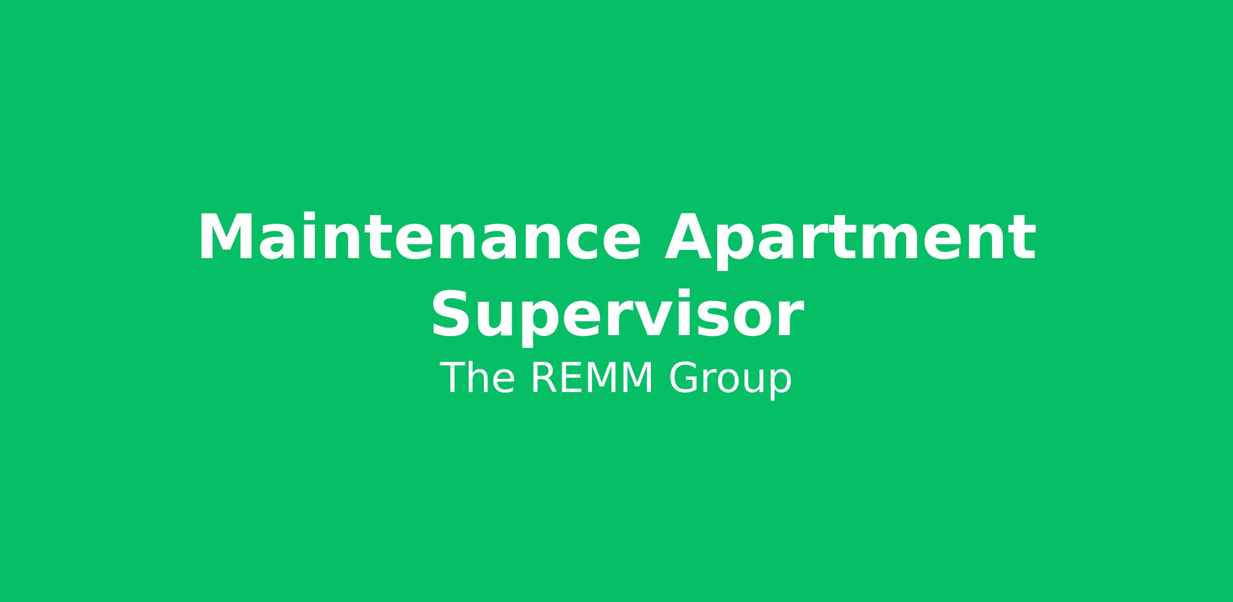 The REMM Group is currently seeking an On-site Apartment Maintenance Supervisor to join our team and support our beautiful community located in Orange County. The Multifamily Maintenance Supervisor is responsible for overseeing the maintenance team and the overall condition and repair of the asset. This position includes managing the day-to-day operations of a property, including repairs, make-ready processes, Capital projects, and preventative maintenance. Possible partial rental discount with this position.