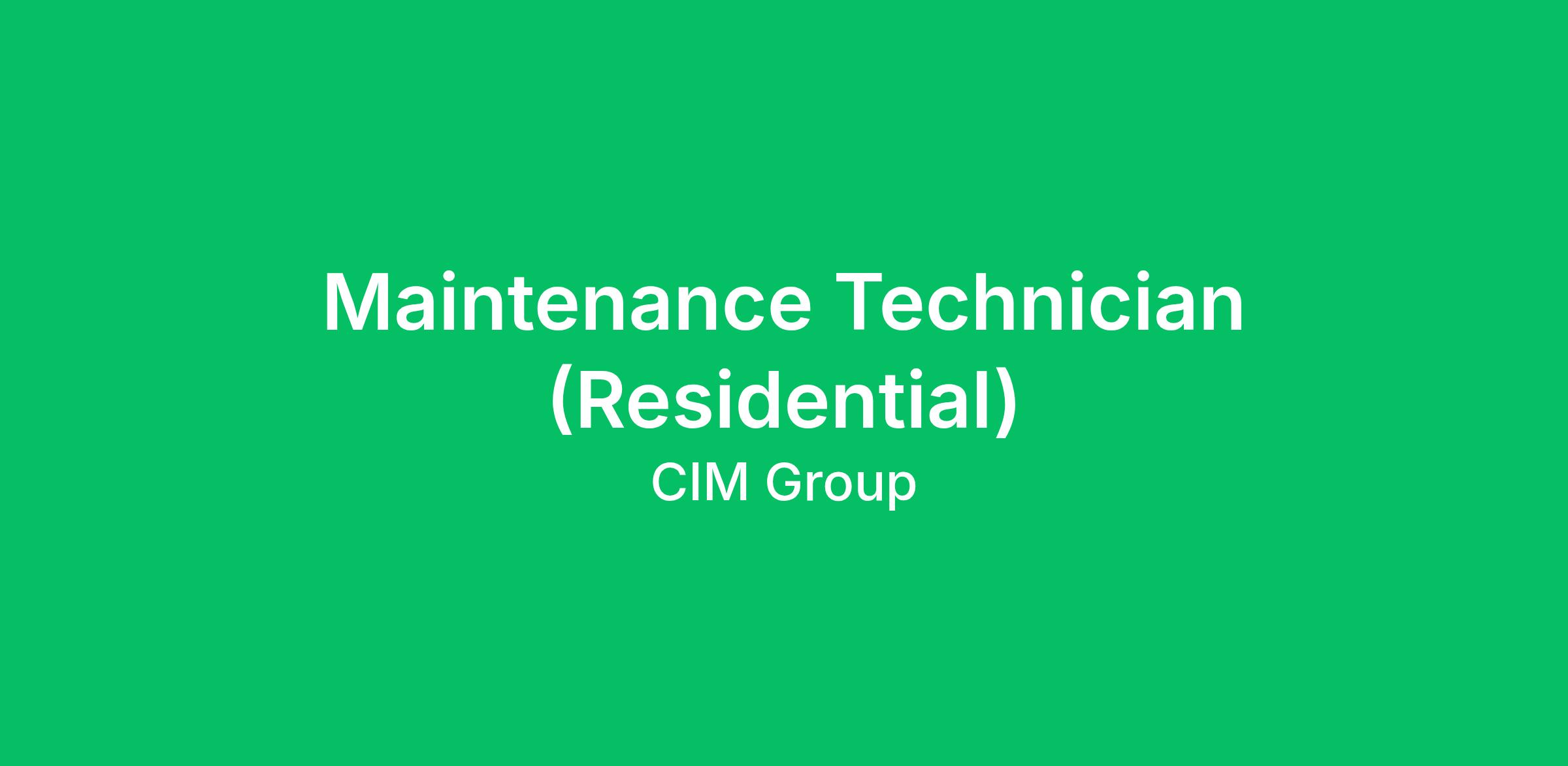 The Residential Maintenance Technician reports to the Property Manager under the supervision of the Maintenance Supervisor and performs general maintenance and repair to ensure apartment units and other property facilities are maintained per CIM Group operating and safety standards. Responsibilities include diagnosing, troubleshooting, and repairing heating, ventilation and air conditioning (HVAC) units; electrical appliances, outlets, and light fixtures; plumbing, carpentry, and locks. Additional responsibilities include, but are not limited to, assisting with preparing vacant apartment units for rental and following a planned preventative maintenance schedule.