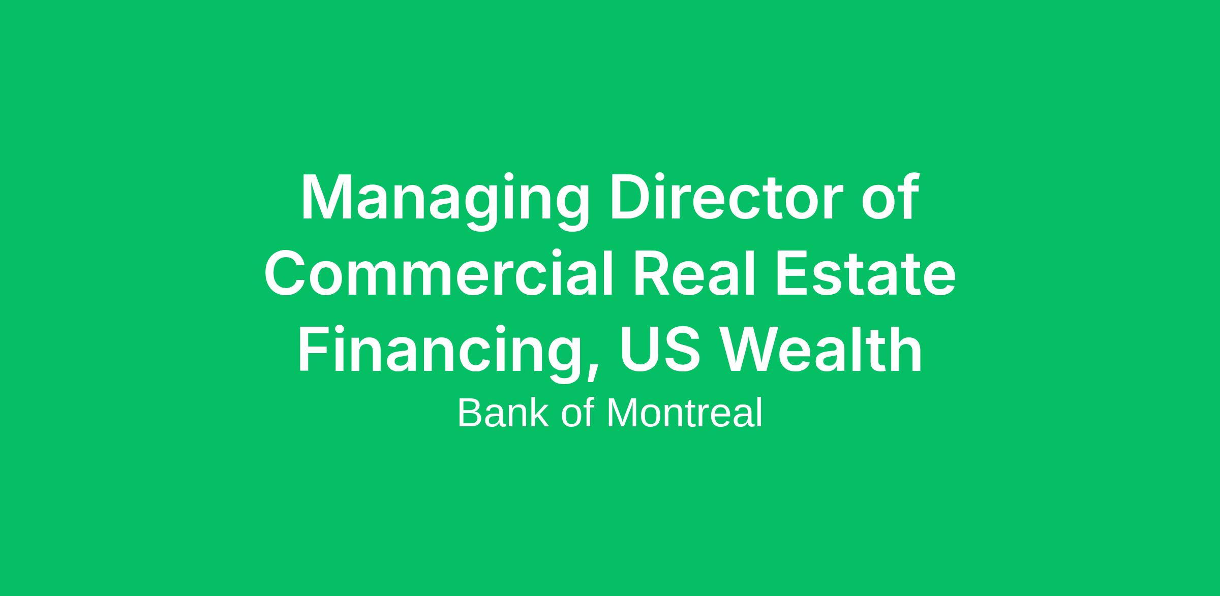 The Managing Director will be responsible for overseeing the development and management of commercial real estate (CRE) lending product offering in U.S. Wealth Management Banking. Management of the existing commercial real estate loan portfolio while driving growth for the business within the United States.