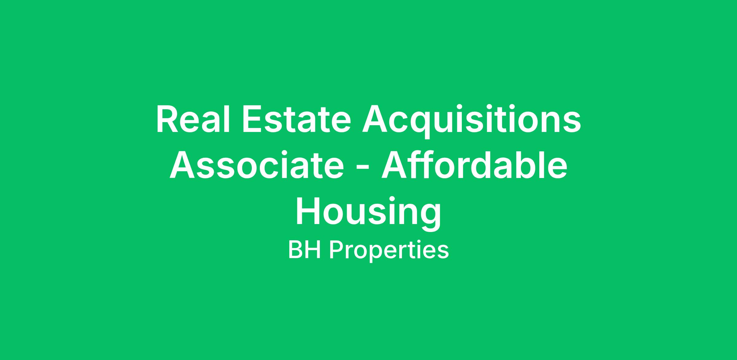 REAL ESTATE ACQUISITIONS ASSOCIATE www.bhproperties.com