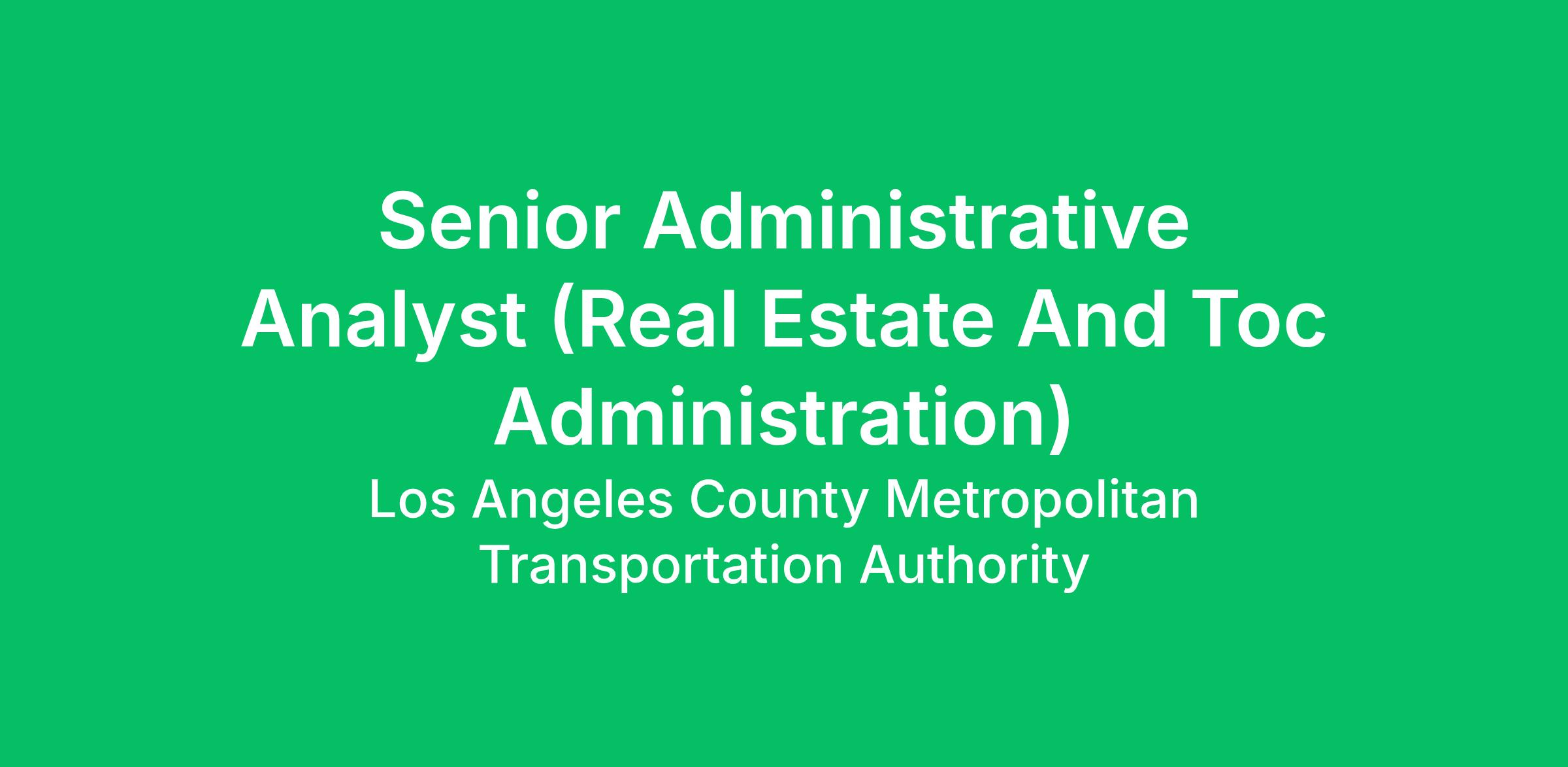 This position provides advanced administrative and financial analysis to support real estate, property management and acquisition, Transit-Oriented Communities (TOC), and joint development programs, including preparation of executive-level reports & memoranda, budget monitoring, and project performance tracking tools.