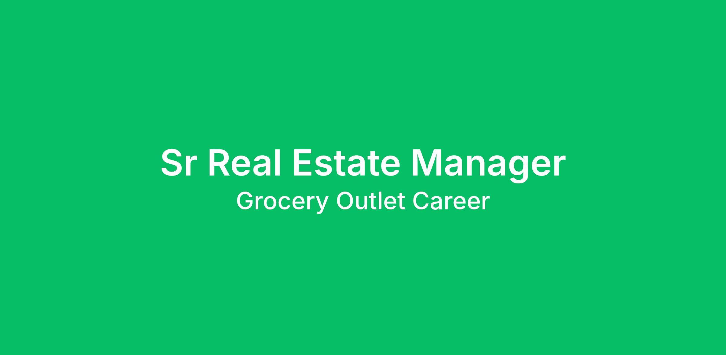 About the Role: The Senior Real Estate Manager will support and execute, under the guidance of a Senior Director of Real Estate, the analysis, selection, negotiation, and development processes associated with Grocery Outlet’s new store, relocation and expansion program. The Senior Real Estate Manager will report to the Senior Director of Real Estate.